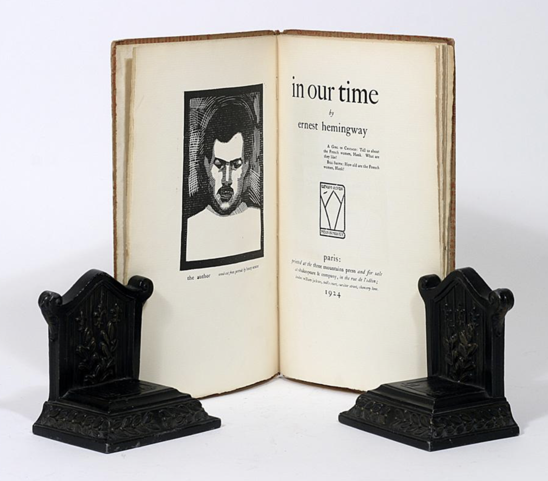 That 1923 version features Henry Strater’s portrait of Hemingway as “the author.”