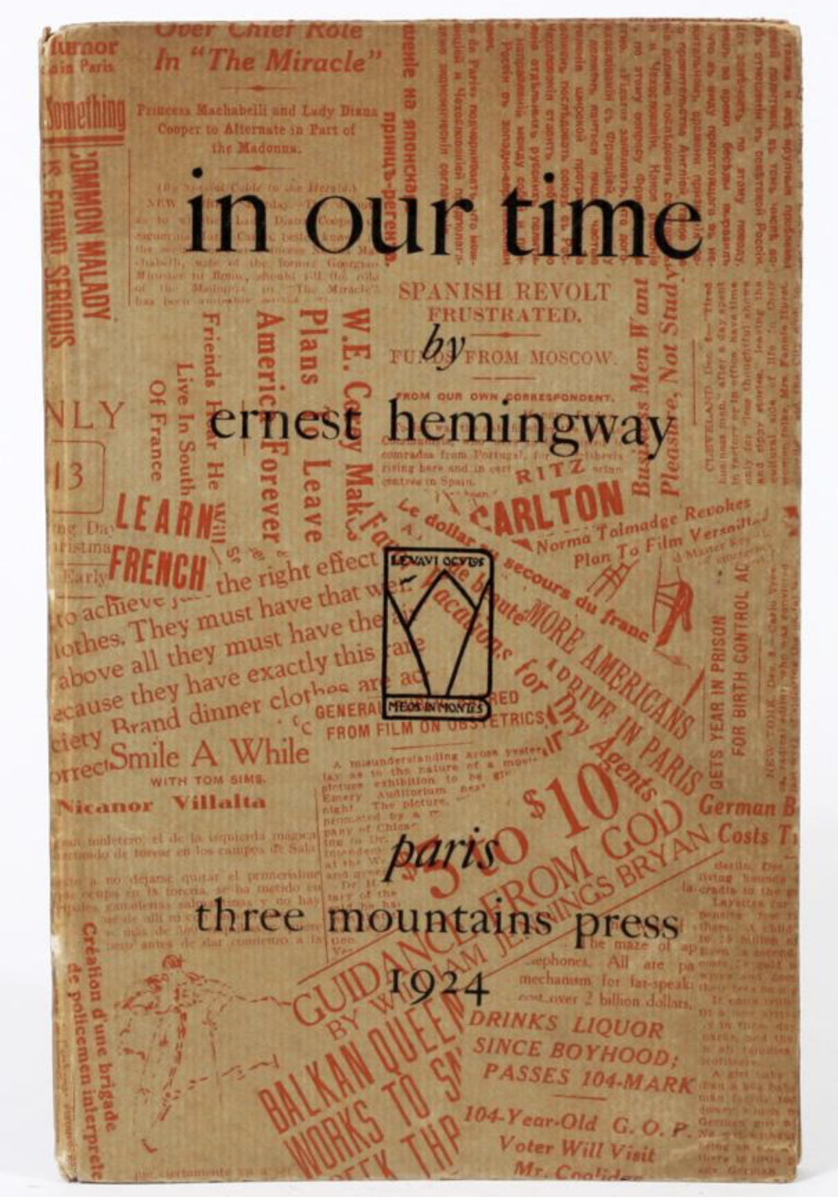 Hemingway wrote some more and published in our time the very next year under Pound’s editorship. This version of In Our Time is just thirty-one pages and was originally printed on hand-made paper in a run of only 170 copies. The back page lists a short catalogue under Pound’s editorship, including Pound’s Indiscretions, Ford Madox Ford’s Women and Men, and William Carlos Williams’ The Great American Novel.