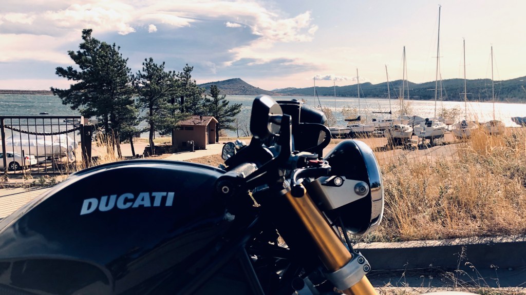The way to Carter Lake from my house cuts through a pretty crossroads town named Hygiene, winds past some horse country with a few nice bends, and then climbs a few hundred feet to arc along the lake’s southern and eastern shore. Towards the north end of the lake, there’s a boat house with a convenience store that makes for a good stop.  It’s a sixty-mile round trip, if you come down the back of the lake and hit the faster roads on the way home.