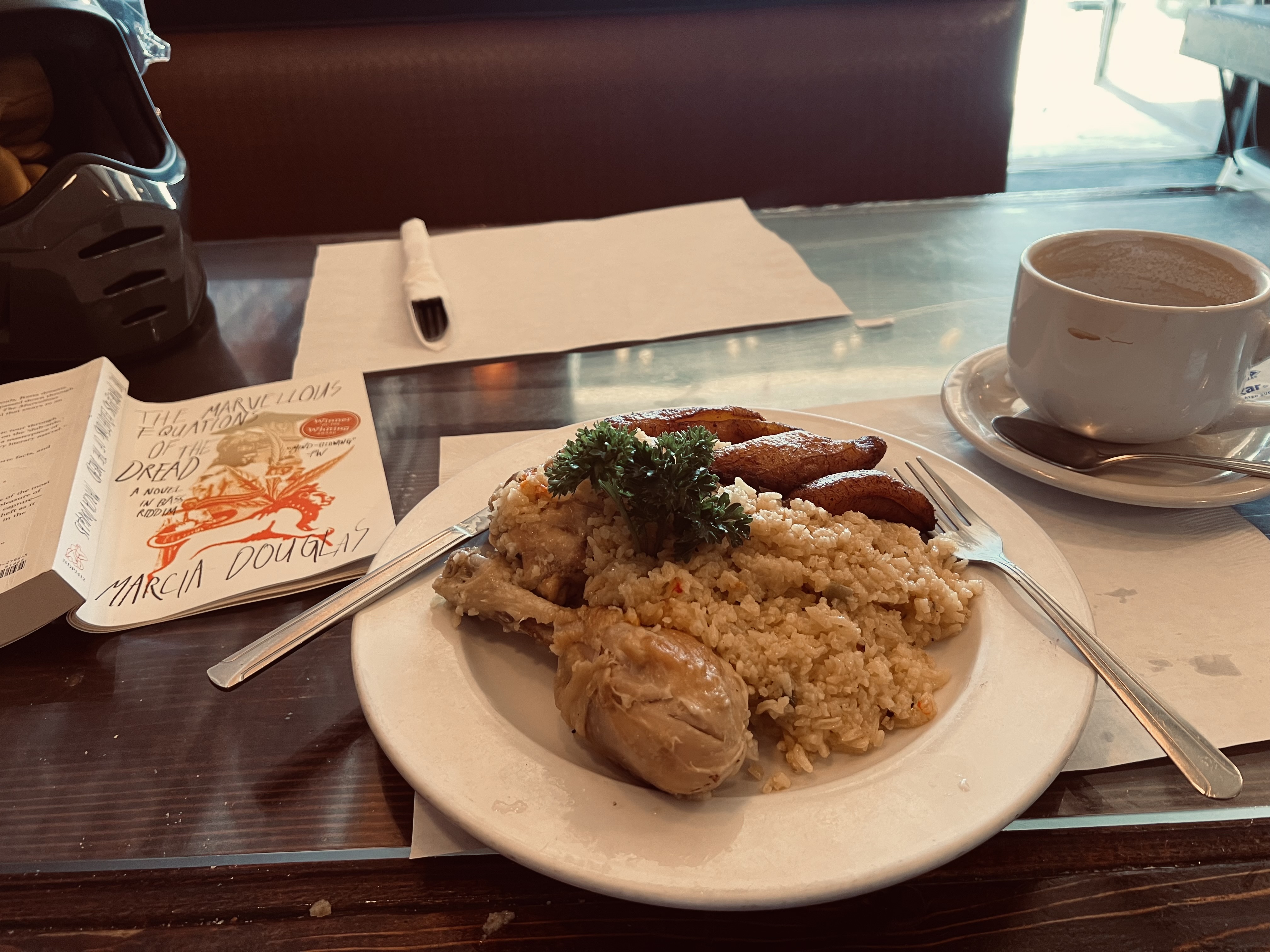 My favoriate Cubano lunch stop in LA closed up due to family infighting. Since then I’ve been on the lookout for a new place. I tried La Cubana on Glendale, but they are closed on Mondays, so I headed further down the avenue, to Baracoa, near the base of Glendale where it crosses the Los Angeles River. I’d seen Baracoa, a shaded one-room, of six or eight booths with a kitchen the back, and have wanted to try it. I got the avocado salad and the arroz con pollo and read Marcia Douglas’ beautiful novel, The Marvellous Equations of the Dread. It was good—the darkness, the novel, the rice—but the experience felt a little disconnected and a little lost in the dark.