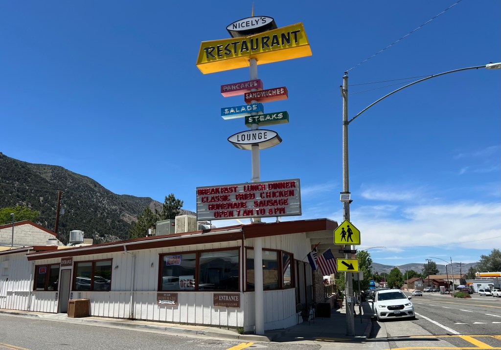4. Out of Bishop the road changes dramatically. We gain elevation and lose temperature. It’s alpine now, twisting and turning beneath the Sierra Nevadas. Lee Vining comes up quickly, a charmer of a strip.