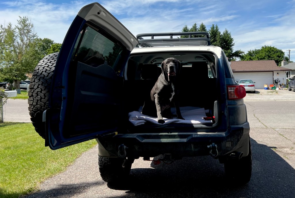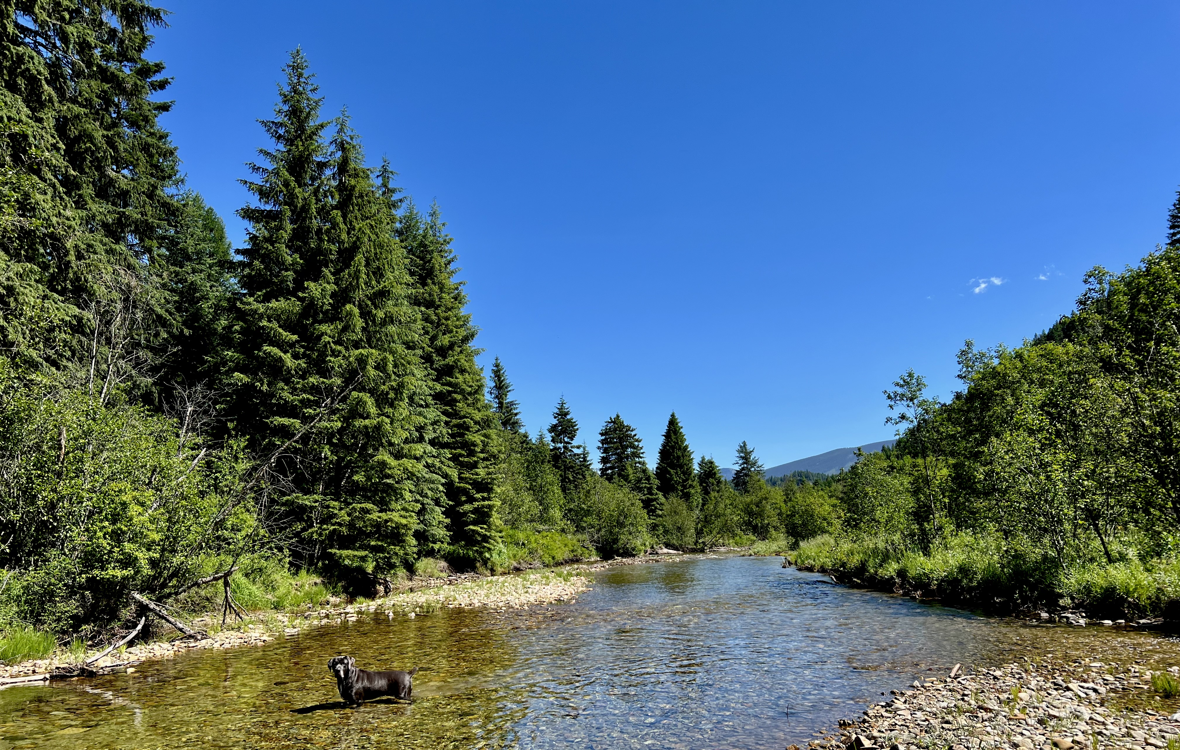 James and Adela recently moved to Missoula and bought some land about two hours northwest. We put the bikes up, and James, Blu, and I headed northwest in his FJ Cruiser.