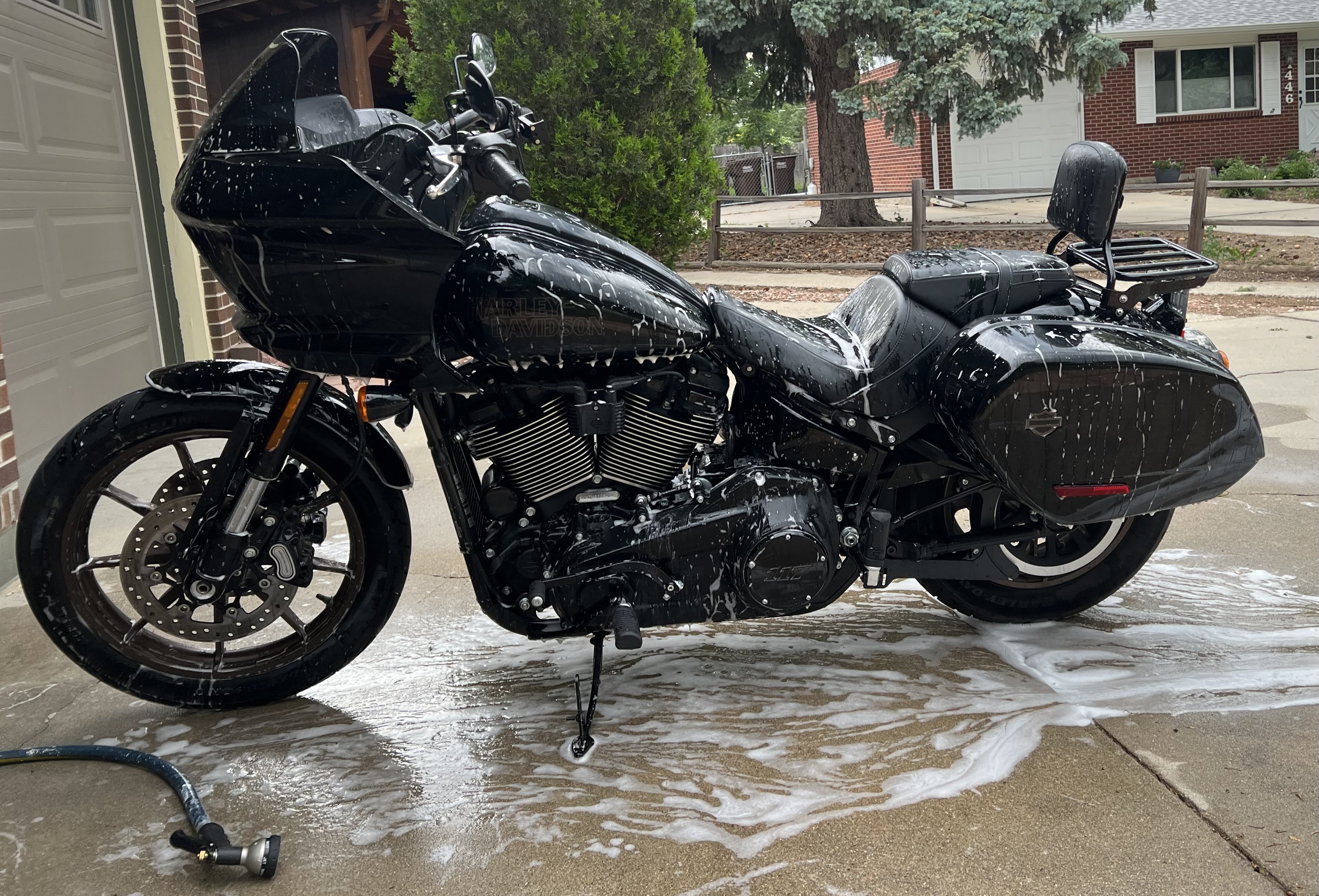 Today I took it down to High Country Harley Davidson for an oil change. Brett is going to experiment with changing the risers that hold up the bars—what more can I ask?