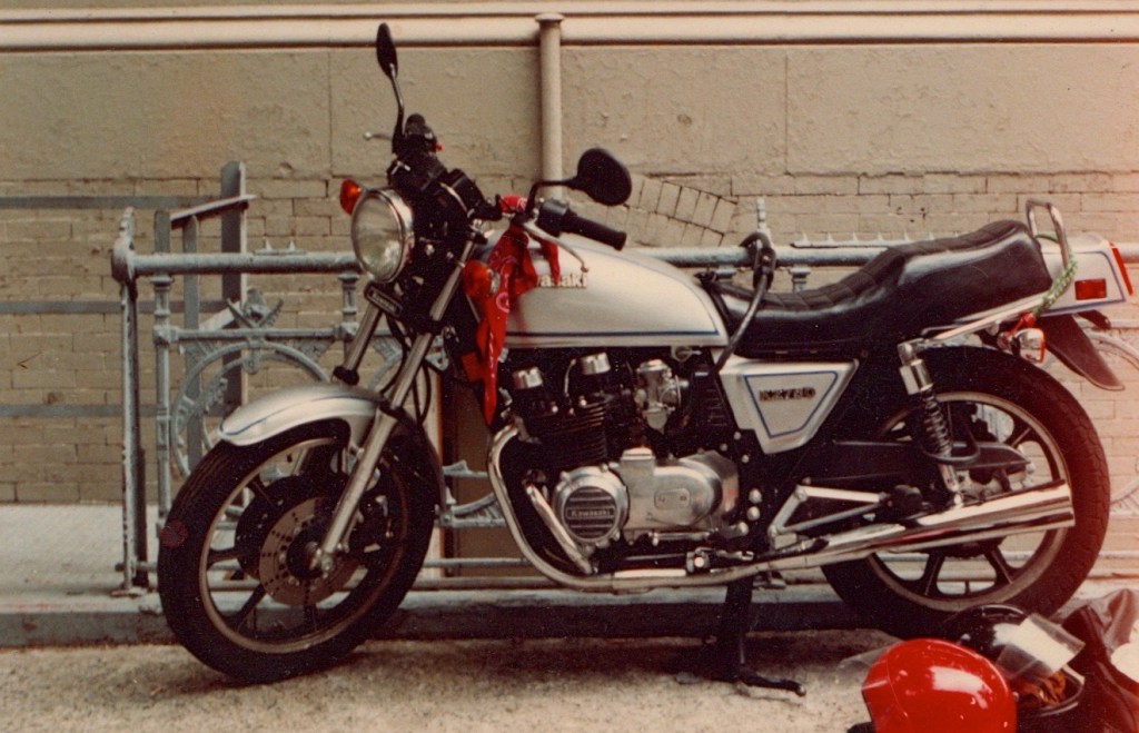 The summer of my junior year I took the money I made from commercials and bought a brand new Kawasaki KZ750E3 from Camrod.